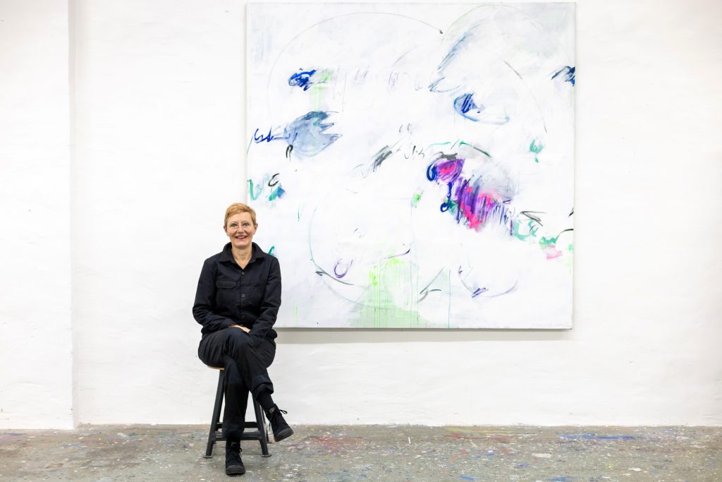 Bilder zurück im Atelier, Acryl auf Leinwand, 200×200 cm, Ulm 2021